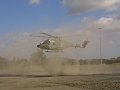 The Lynx lands in a cloud of sand.